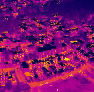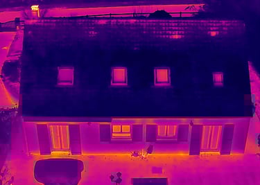 Nos inspections thermographiques permettent de localiser les ponts thermiques et les défauts d'isolation sur vos façades, fenêtres et murs extérieurs. Associée à notre orthophoto de toiture, cette analyse fournit un bilan énergétique complet, indispensable pour les bâtiments publics comme privés.